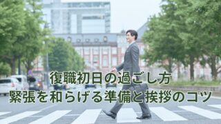 休職と復職 【完全ガイド】復職初日の過ごし方|服装・挨拶・手土産の準備まで 復職初日に迷いやすい服装・挨拶・手土産の選び方を解説。挨拶例文、菓子折りのマナーまで具体例と注意点をまとめた実践ガイドで、あなたの不安を解消する実践的なヒントをお届けします。不安を減らして一歩を踏み出しましょう。 2025.09.15 休職と復職