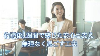 休職と復職 【体験談】復職後1週間で感じた安心と支え :無理なく過ごす3つの工夫 「復職=無理の始まり」と思っていませんか?前職のトラウマを背負った私が、あえて目標を「慣れることだけ」に絞り、心の安全を確保した具体的戦略を初公開。「完璧主義」を捨てて、あなたも生き残るための1週間を。 2025.10.03 休職と復職